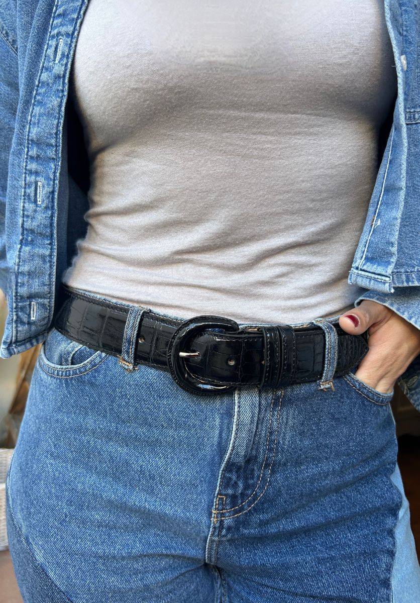 The glossy finish brings a modern, refined edge, perfect over denim, tailored trousers, or even a dress. Ethically crafted from surplus leather sourced from luxury brands, each belt is unique, giving new life to what would otherwise be wasted. Effortless and striking, this belt is that finishing touch that makes any outfit look pulled together.