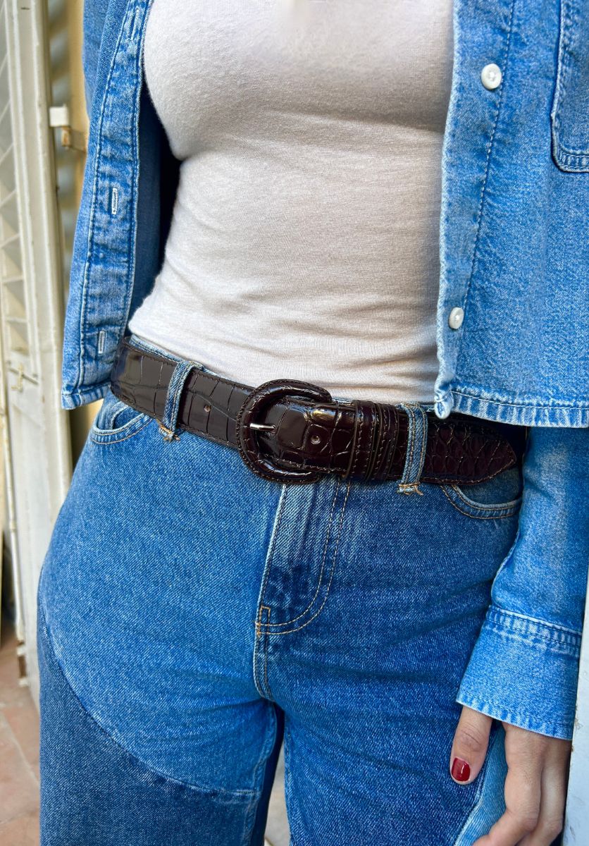The glossy finish brings a modern, refined edge, perfect over denim, tailored trousers, or even a dress. Ethically crafted from surplus leather sourced from luxury brands, each belt is unique, giving new life to what would otherwise be wasted. Effortless and striking, this belt is that finishing touch that makes any outfit look pulled together.