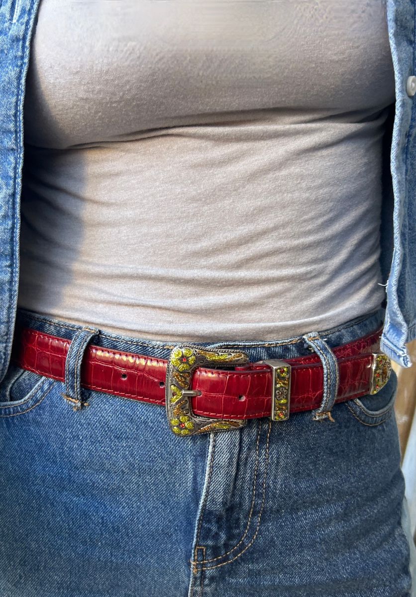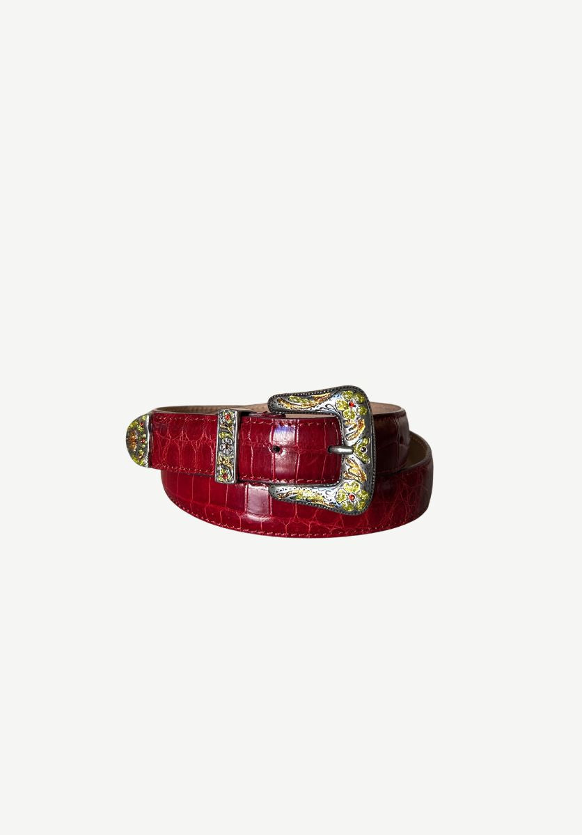 Handmade in Italy from repurposed luxury leather, the Rodeo belt blends bold character with timeless craftsmanship. Its croc texture and vibrant contrasts make it a statement piece that instantly elevates any look.