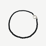Cut-offs leather, natural onyx stones 0,5 mm, silk thread, silver hoops. Ring: silver plated steel. Packaged in recycled and fully recyclable cardboard. Printed without harsh chemicals, with reduced energy consumption during production