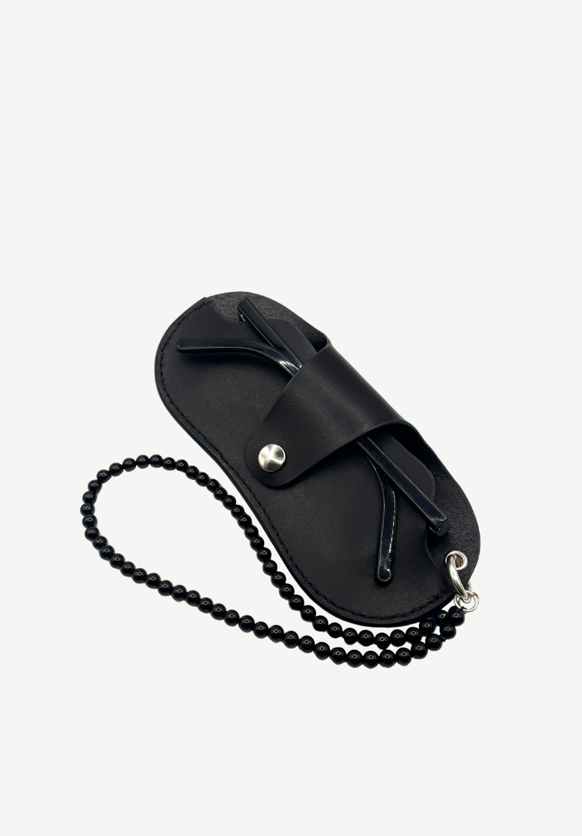 A unique piece, handcrafted in Copenhagen by Edyth Scyn x Sicels. Made from locally sourced leather off-cuts and natural Onyx gemstones, this elegant eyewear holder doubles as a necklace. Each piece is one-of-a-kind, with natural variations in color, reflecting the beauty of the materials.