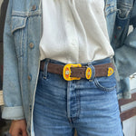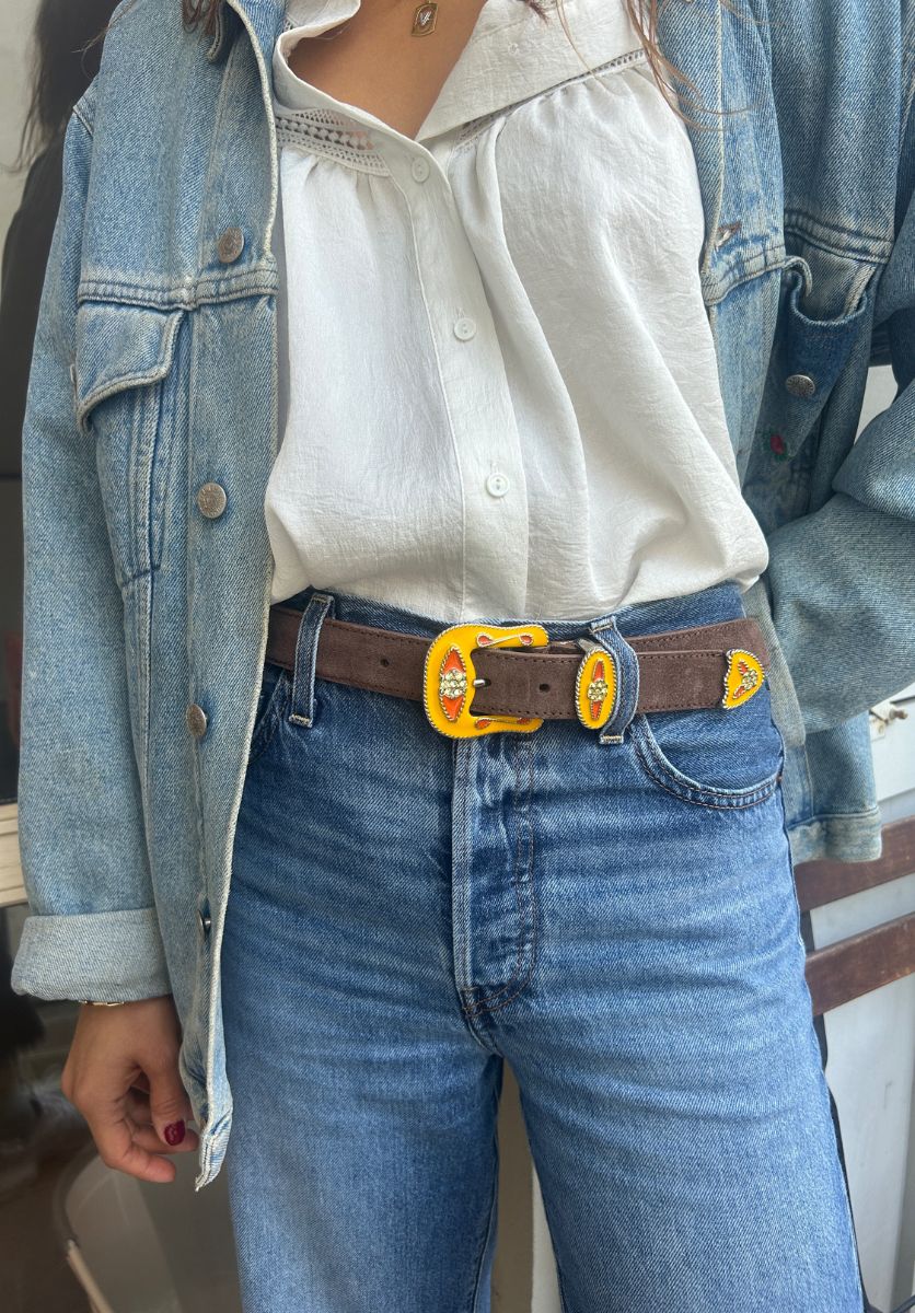 Handmade in Italy from repurposed luxury leather, the Scooby-doo belt brings a bold dose of color and nostalgia to your look. Its handcrafted buckle, an original piece from the ’80s, adds a playful twist to classic craftsmanship. With its vibrant colour palette and compact 4 cm buckle, this belt channels vintage energy in the best way possible.