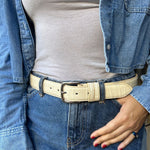 Handmade in Italy from repurposed leather, the Metal Buckle Belt by Sable gives new life to surplus materials from luxury brands. Finished with a polished gold buckle and a sleek 3.5 cm height, it adds a refined edge to any look: from tailored trousers to everyday denim.
