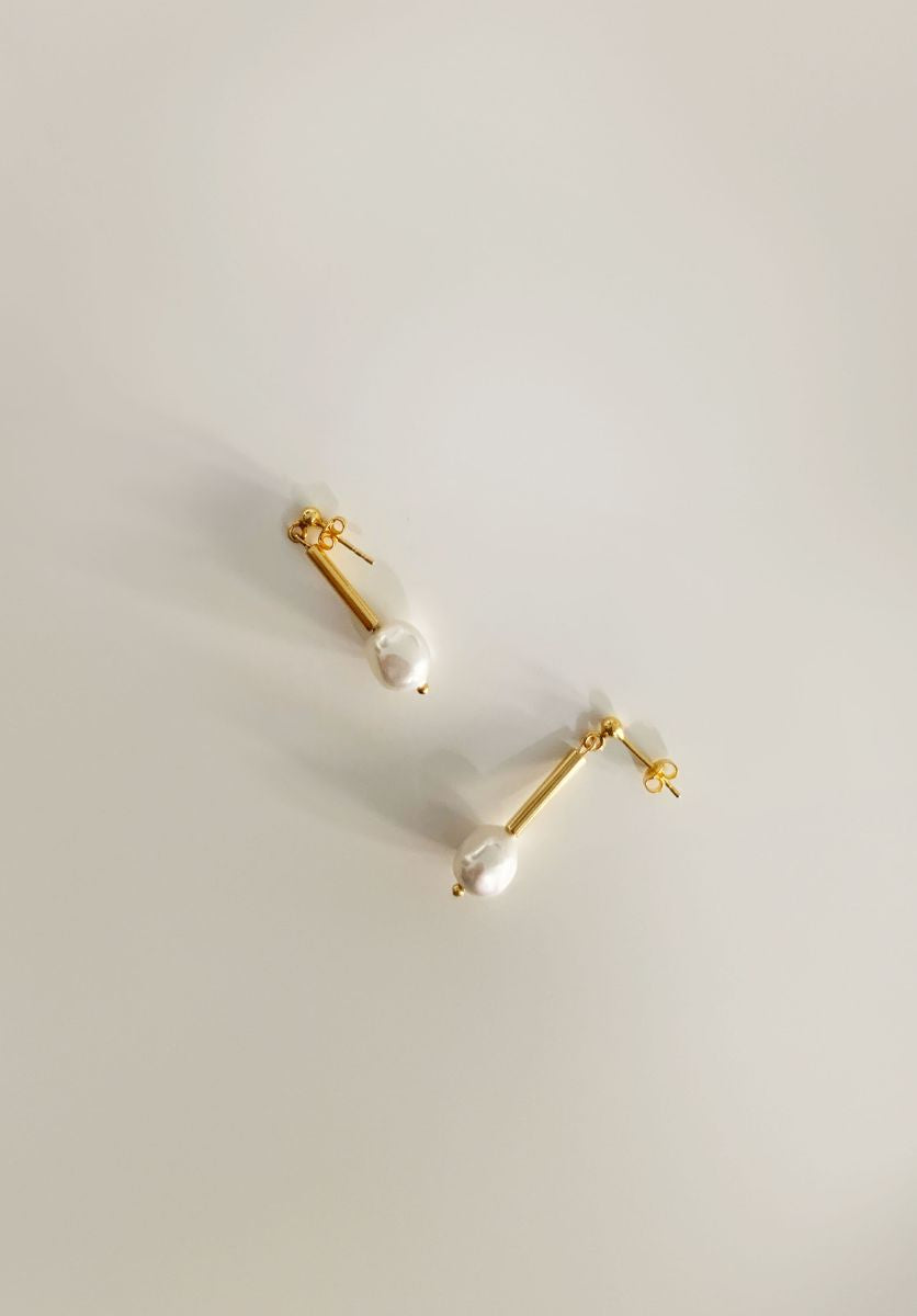 Gold-plated earring post, Mallorca pearl, gold-toned metal tube.
