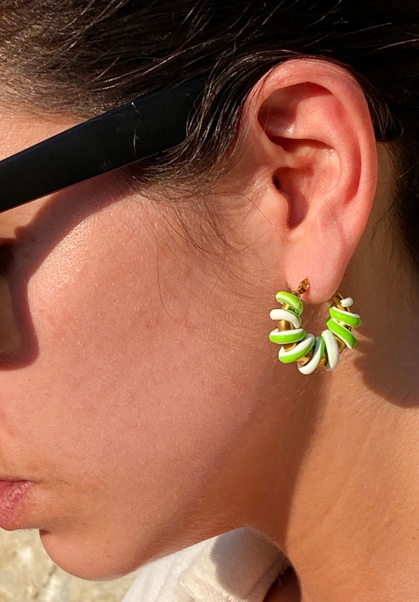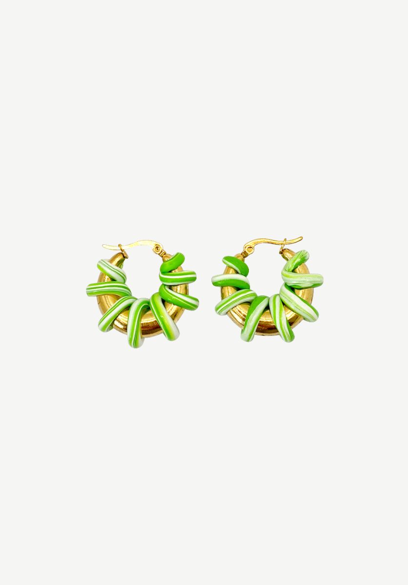 Bold yet whimsical, the Small vermetto brings a touch of unexpected charm to your everyday style. This pair of 2.5 cm gold-toned stainless steel hoops is adorned with handcrafted vermetti, a tiny little worm details sculpted in polymer clay.
