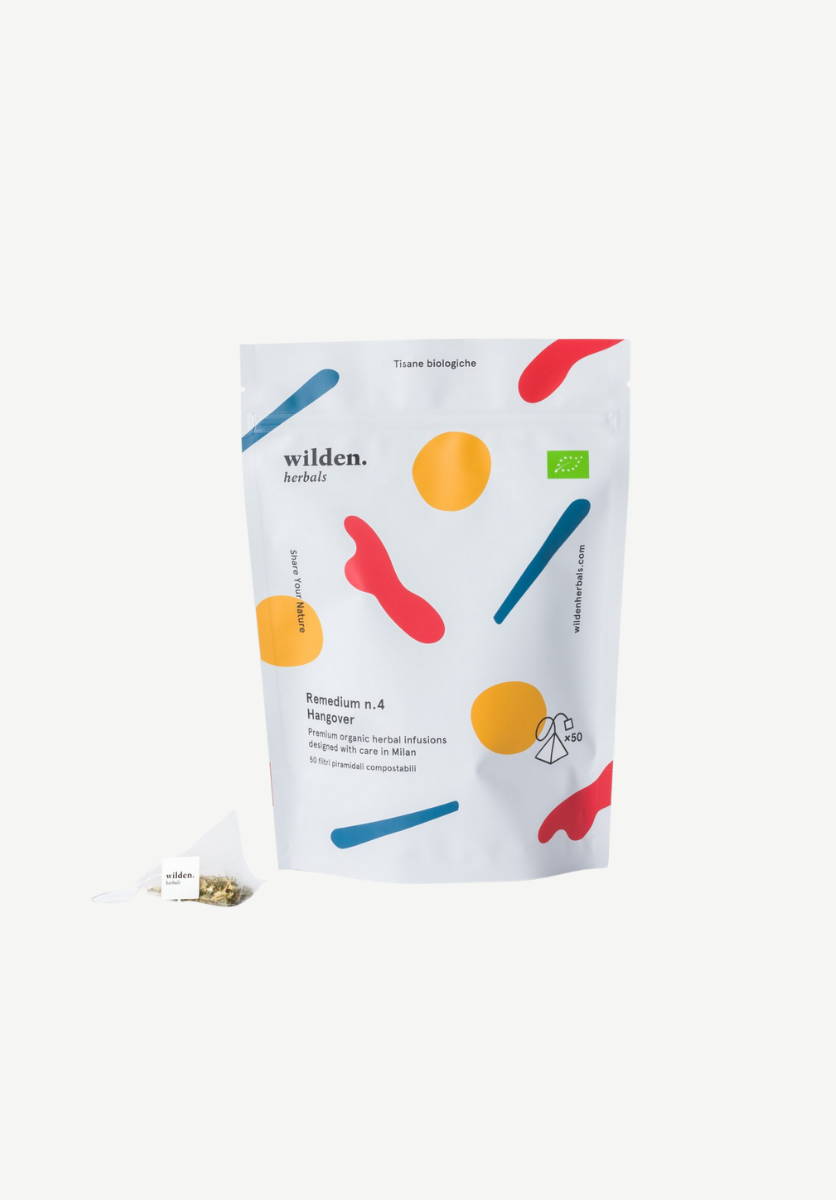A real and contemporary remedium has been made in Italy. Remedium – 4 is a complex recipe, made up of 12 herbs specially selected and chosen to guarantee a regenerating sensation and restart at its best, especially when we are ‘hangover’. In this remedy we find lemon, lemongrass and orange, ingredients rich in Vitamin C with toning properties; mint, ginger and licorice instead characterise the taste, giving the infusion a fresh and fragrant flavour. Black pepper and turmeric go hand in hand, while mallow, gentian and chamomile guarantee the balance between all the herbs, favouring a synergistic action in favour of the liver, stomach and intestines, releasing a marked sensation of tone and energy.