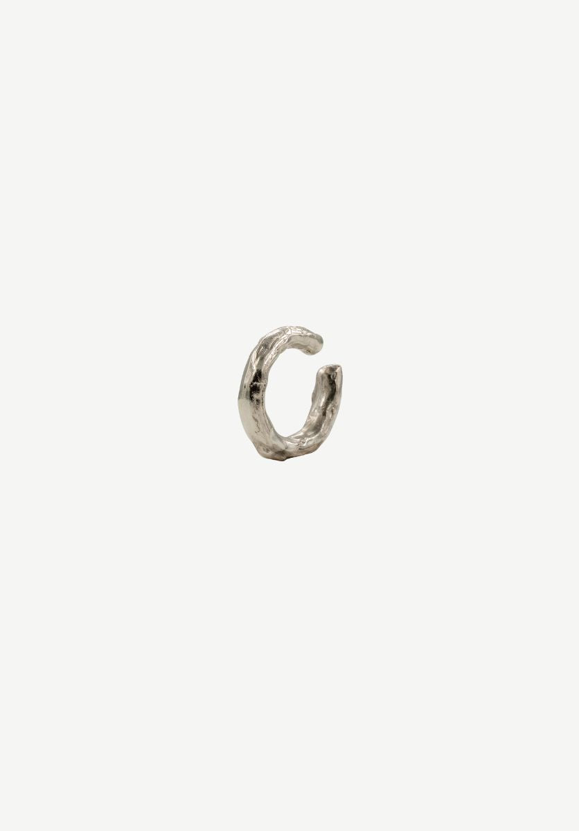 The Lava earcuff is carved in silver with a vivid, irregular texture inspired by the lava flows of Mount Etna. Raw and organic, it celebrates the power of matter turning into form, fire becoming jewelry.