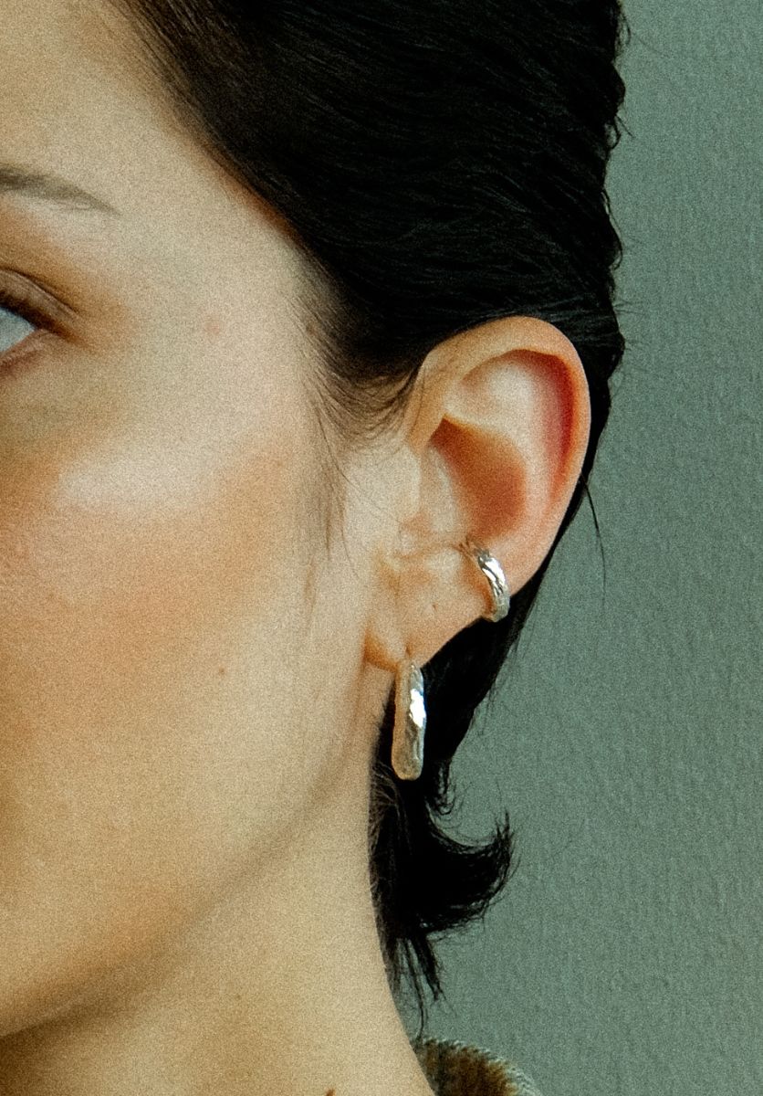 The Lava earrings are carved in silver with an irregular surface inspired by the lava flows of Mount Etna. Bold and organic, they capture the raw beauty of matter in motion, where fire turns into form and energy becomes jewelry.