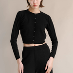 The Cashmere mix cropped cardigan is soft, lightweight, and just the right amount of cropped. It’s finished with raglan sleeves, ribbed edges, and real mother-of-pearl buttons, details that make it feel elevated without trying. Made in Italy from a cozy wool and cashmere blend, it’s the everyday piece you’ll end up wearing on repeat.