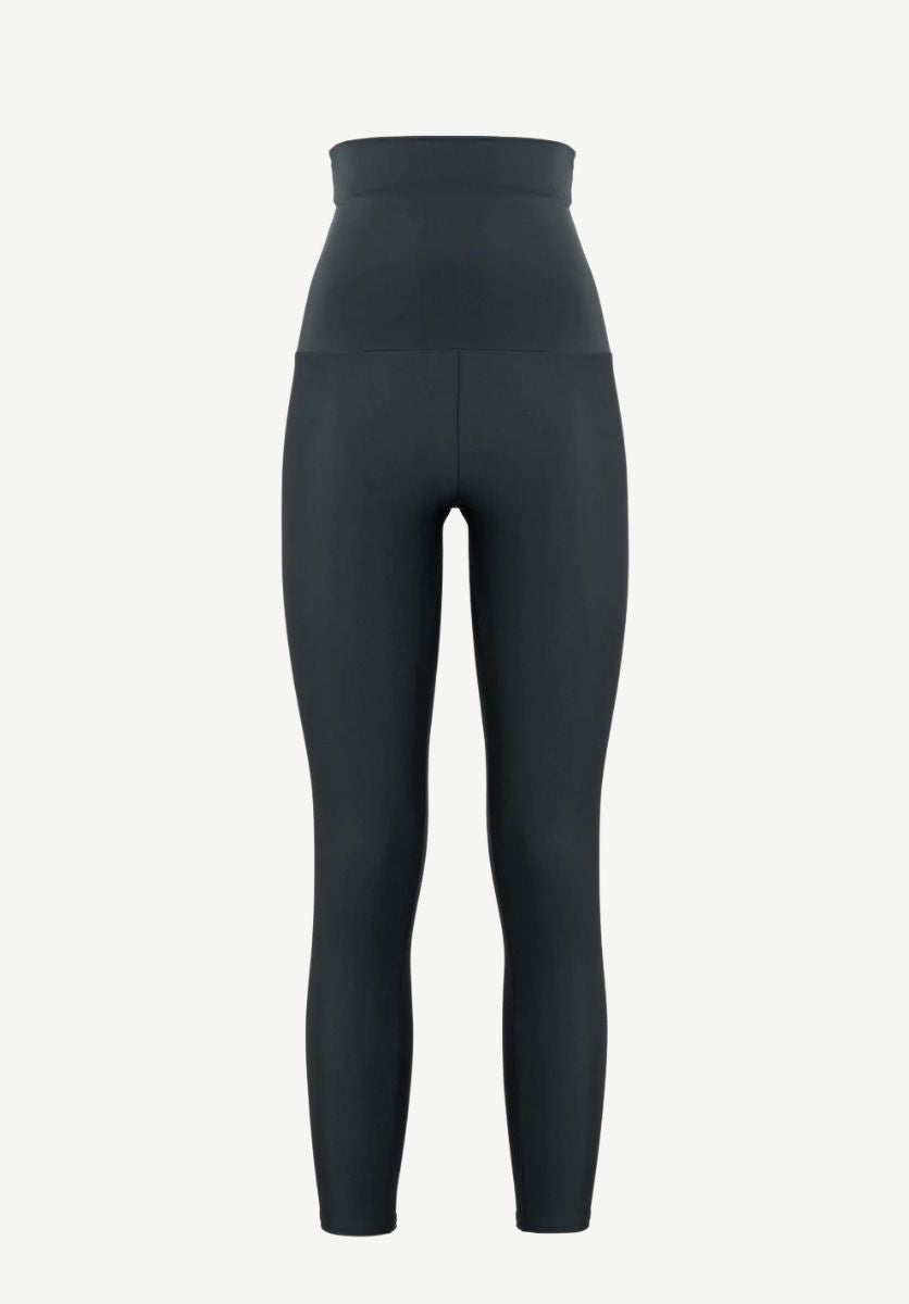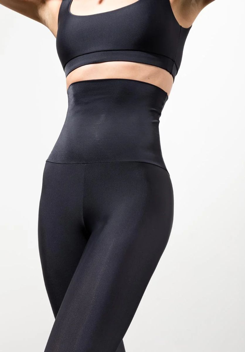 Handcrafted in recycled Italian lycra, it blends tailoring precision with activewear comfort. Its ultra-high 20 cm waist sculpts the silhouette, giving you both support and elegance whether you’re training, stretching, or just moving through your day.